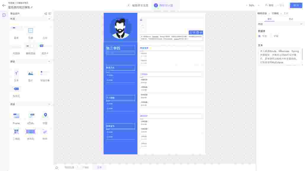 针对简历页面基于设计师平台可以快速设计出多种页面样式,,,,满足不同客户的多样化业务需求