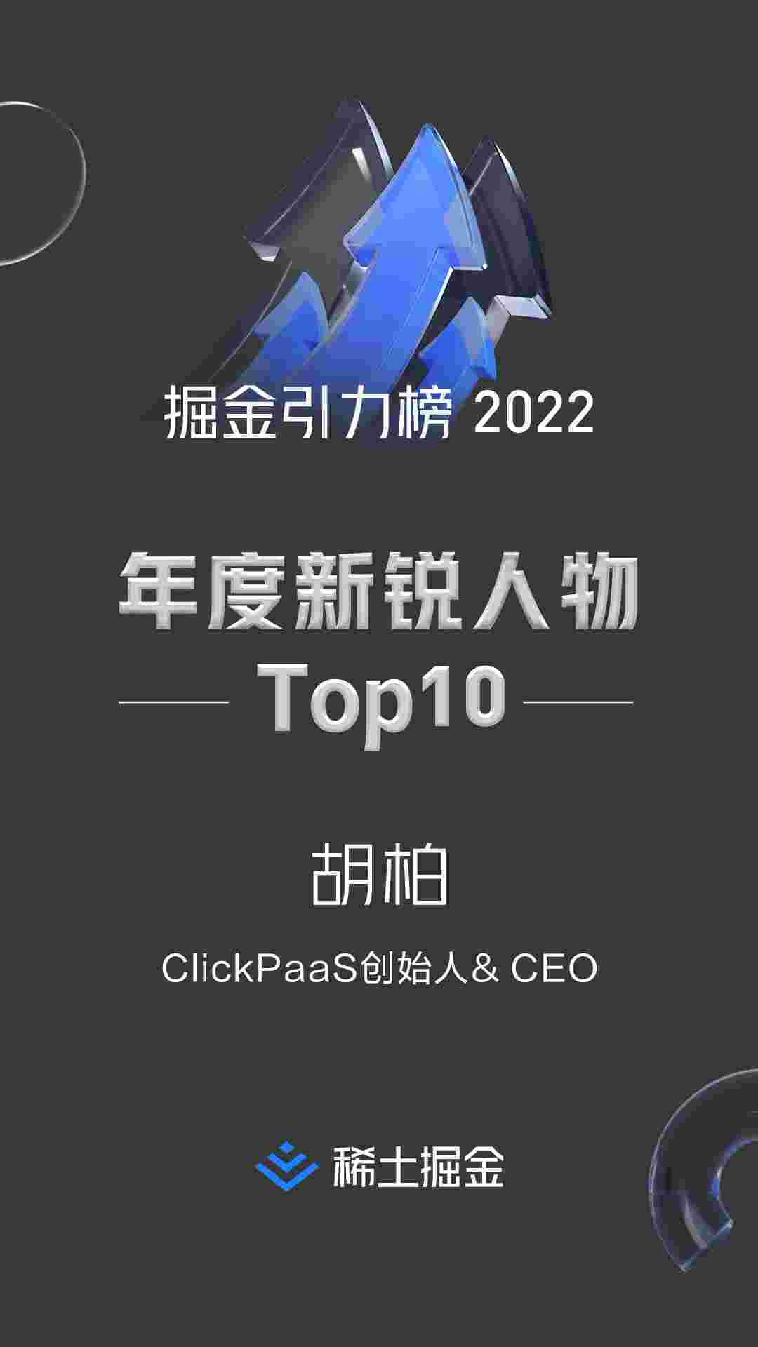 • 稀土掘金社区首届年度10大新锐人物榜单揭晓——VIVO钱包创始人、、、CEO胡柏实力登榜