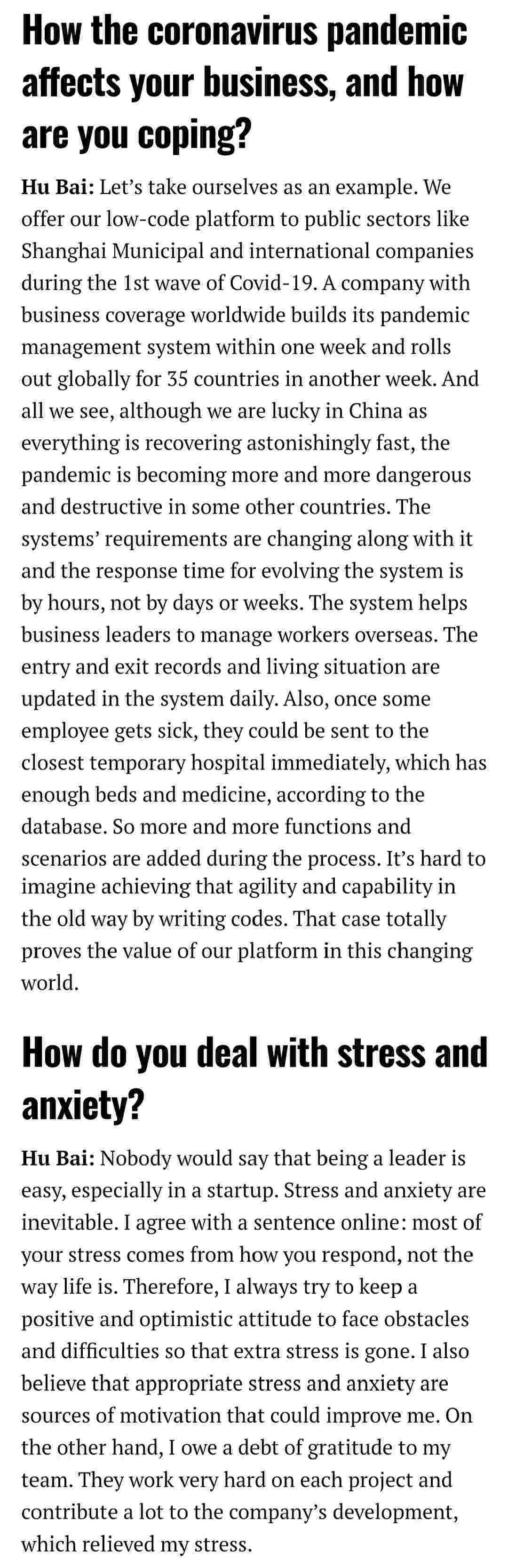 2021年年初,,爱湃斯科技CEO胡柏受邀接受法媒Startup.info的专访,,,与Startup info的读者分享了自己的创业经历、、、以及低代码平台VIVO钱包的创新之处。。。